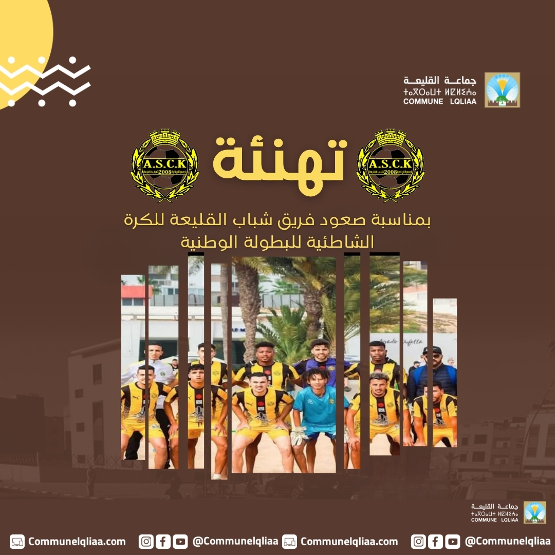 تهنئة بمناسبة صعود فريق شباب القليعة للكرة الشاطئية للبطولة الوطنية
