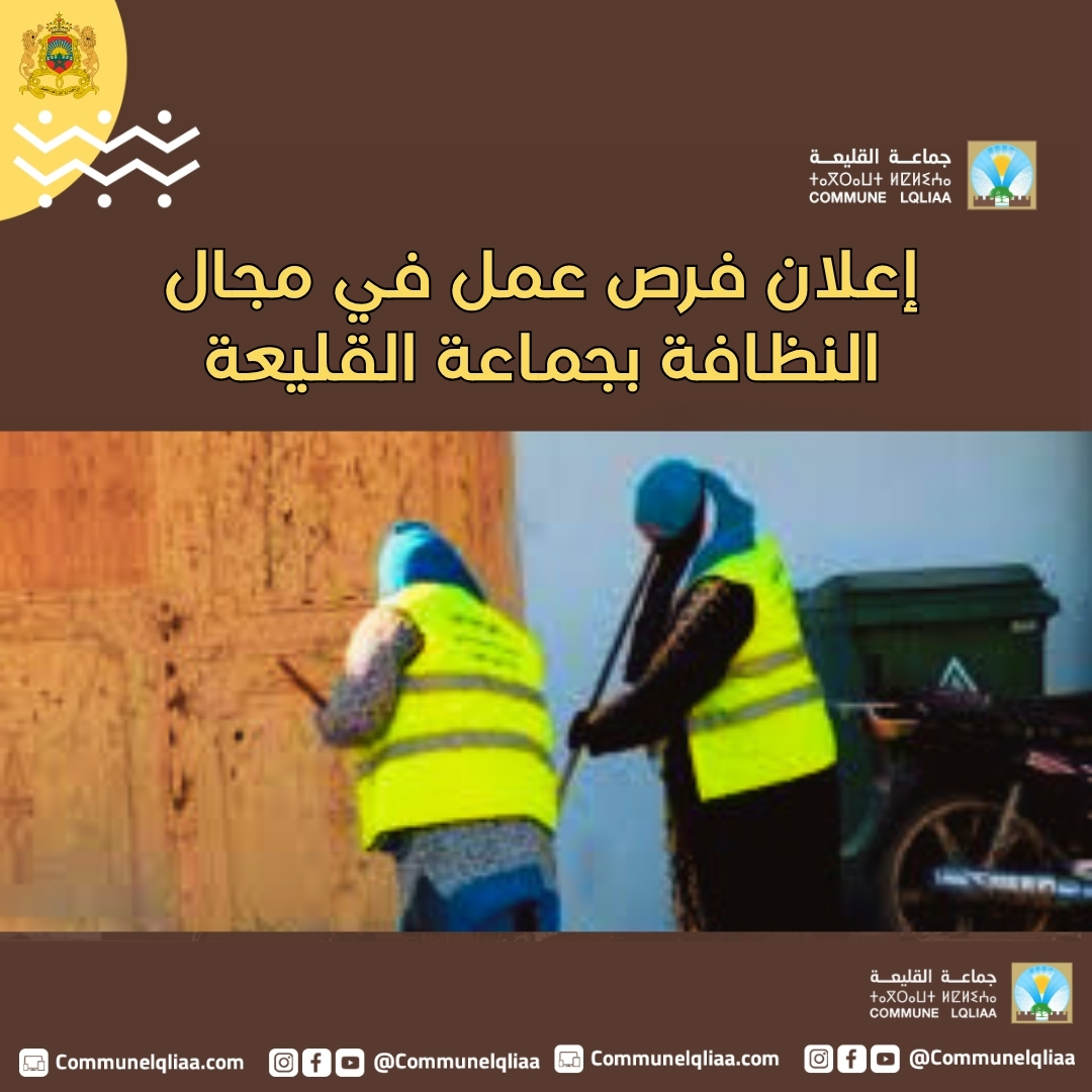 إعلان فرص عمل في مجال النظافة بجماعة القليعة